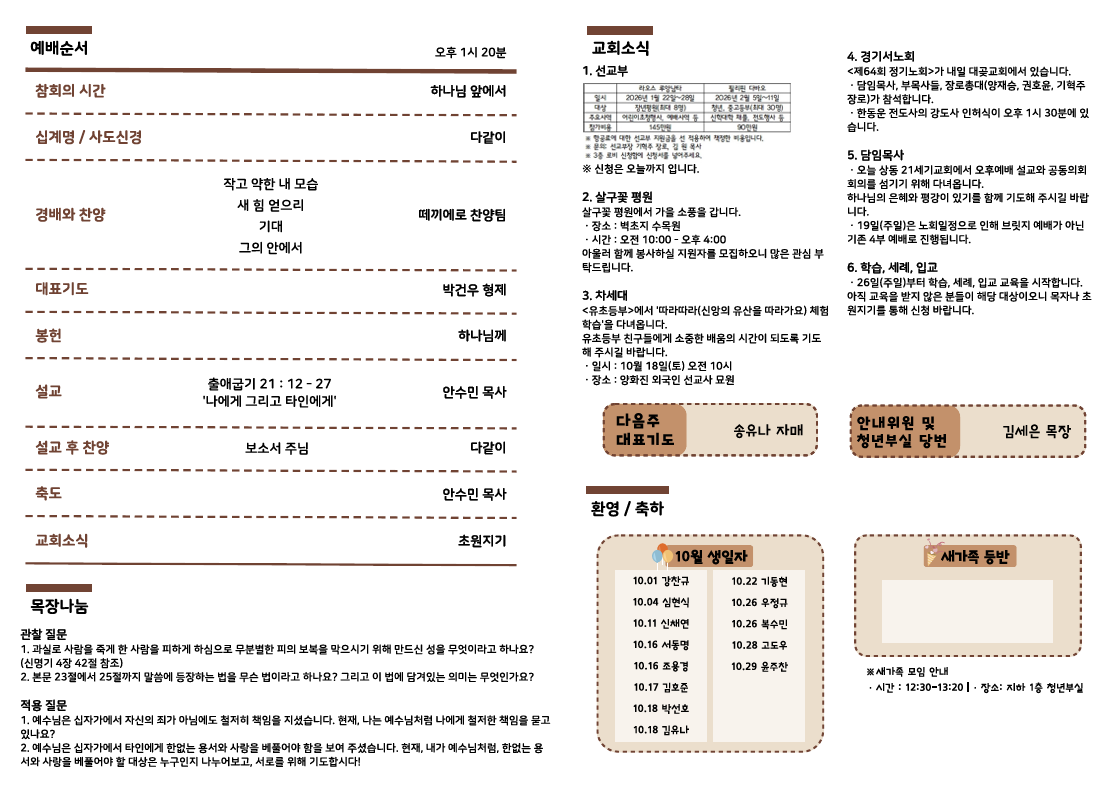 - | 2025년 10월 12일 주일 예배 주보입니다. | 중동교회 ![]() | 2025-10-11 |