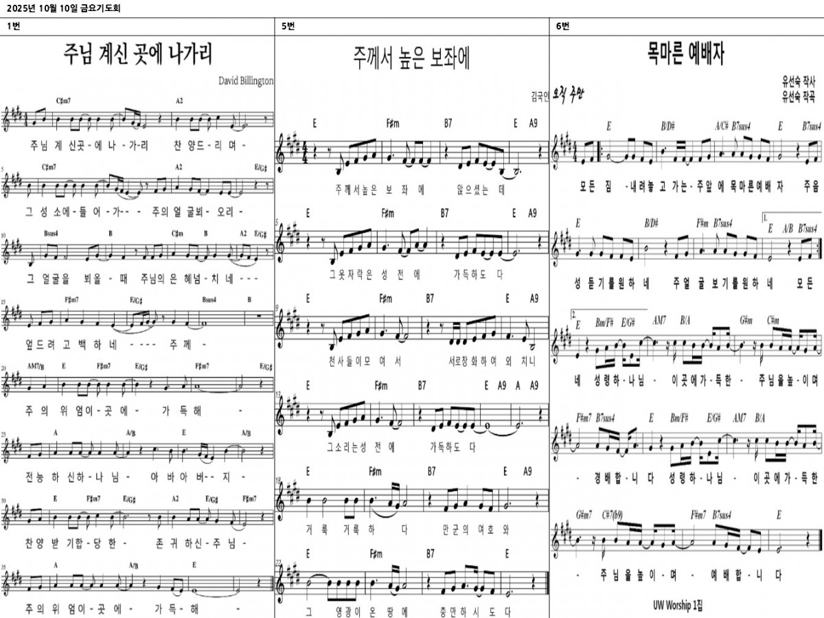 - | [금요기도회] 2025년 10월 10일 찬양콘티 | 중동교회 ![]() | 2025-10-09 |