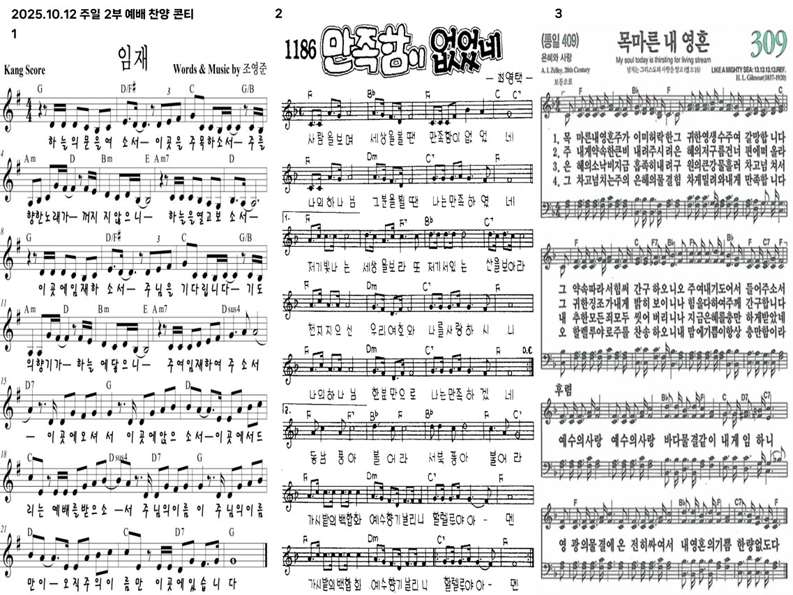 이전 | [주일 3부예배] 2025년 10월 12일 찬양콘티 | 중동교회 ![]() | 2025-10-10 |