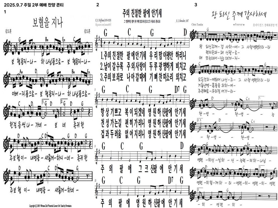 - | [주일 2부예배] 2025년 9월 7일 찬양콘티 | 중동교회 ![]() | 2025-09-04 |