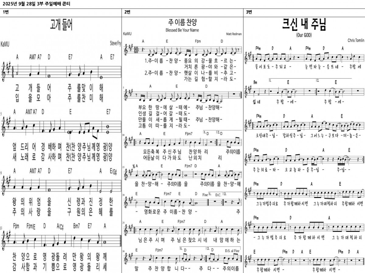 - | [주일 3부예배] 2025년 9월 28일 찬양콘티 | 중동교회 ![]() | 2025-09-25 |