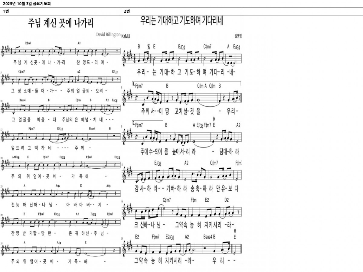 다음 | [주일 2부예배] 2025년 9월 28일 찬양콘티 | 중동교회 ![]() | 2025-09-25 |